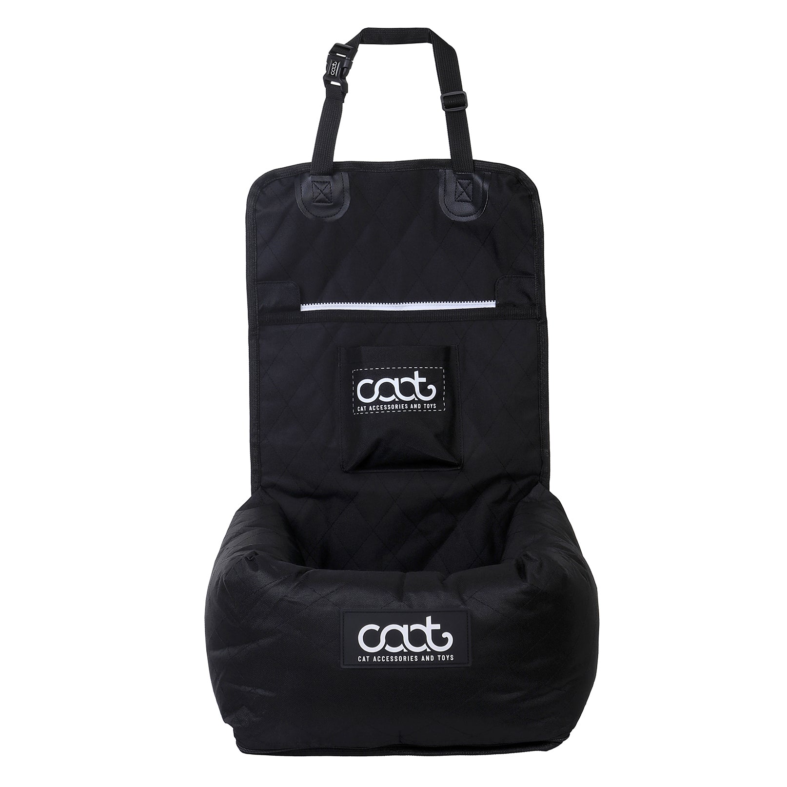 Pop your cat into the car seat and clip the Car Restraint (sold separately) to the nearest seatbelt buckle. Attach the other end to your cat’s harness. Alternatively, use the built-in tether strap provided with the Cat Car Seat.